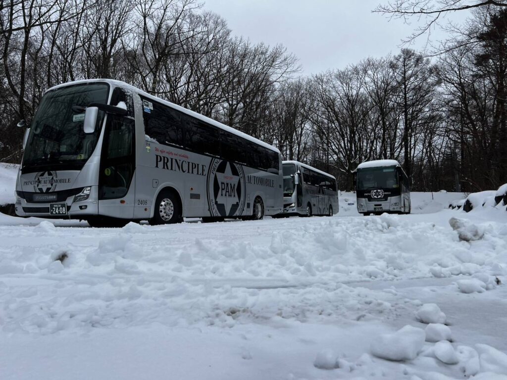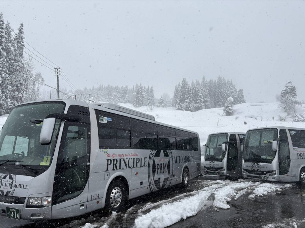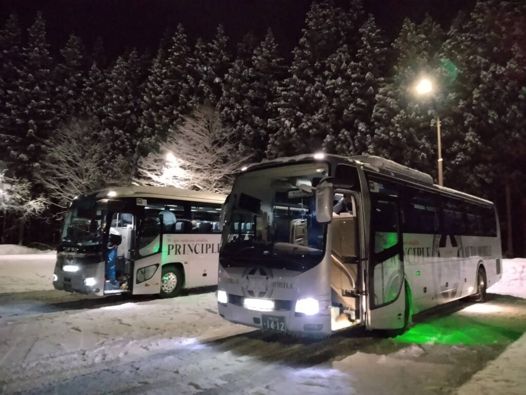 2月バス写真【スキーバスや雪山のイメージ】