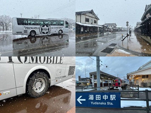 長野に行っている乗務員から写真が届きました📷どうやら新年早々にチェーンを巻いているようです。先日ご紹介した『雪道に備えて!バスのタイヤチェーン調整👍』にもあるようにスムーズに装着できるように訓練しております(^^)/写真は湯田中温泉周辺、2泊3日で温泉を堪能🚌この時期はスキーや初詣ツアーで結構忙しいんです💦(もちろんありがたいことではあるんですけどね!)