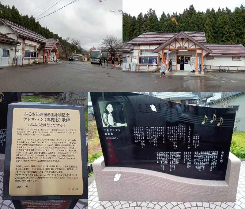 会津宮下駅へお客様をお送りして🚋移動。駅を散策したところテレサ・テンの代表曲のひとつ「ふるさとはどこですか」の歌碑がありました!「ふるさと運動」50周年とテレサ・テン没後30年を記念して建立したとのこと!(ちなみにテレサは福島県三島町の特別町民になっています)