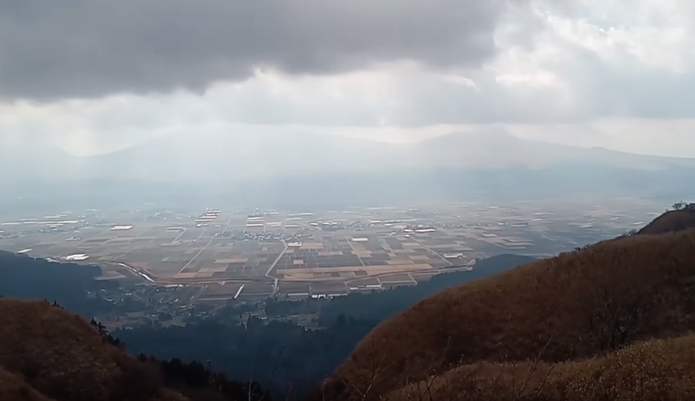 眼下には一の宮町‼正面に阿蘇五岳の大パノラマ👀早朝なら雲海が見えるのだとか🌊