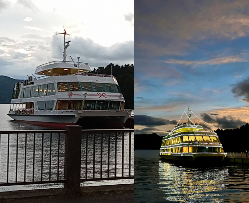 船体も綺麗にライトアップされています✨湖上に浮かぶ幻想的な情景は格別なんでしょうね🥰この日は台風が接近していたのですが、無事に観覧できてよかったです♪