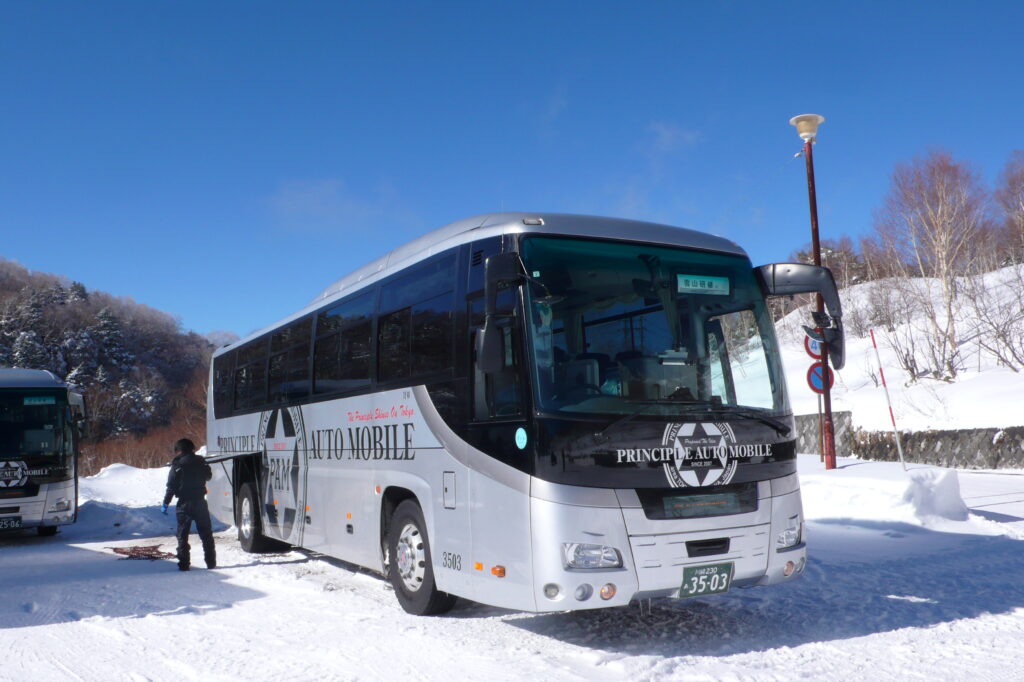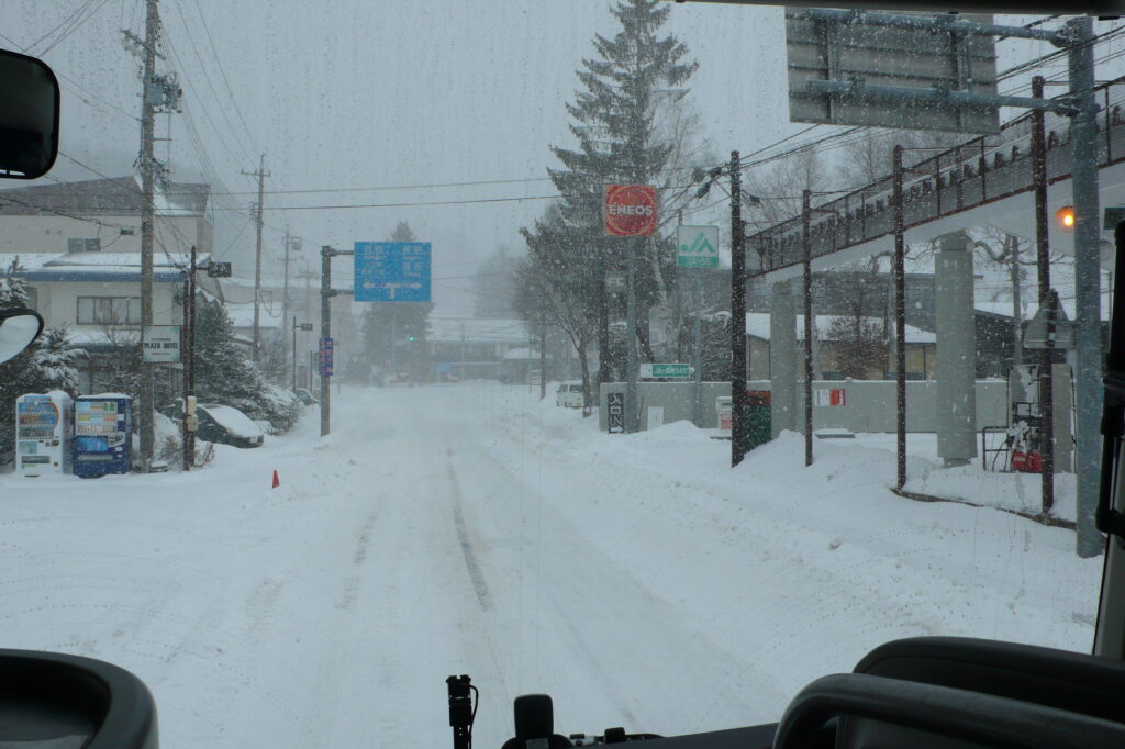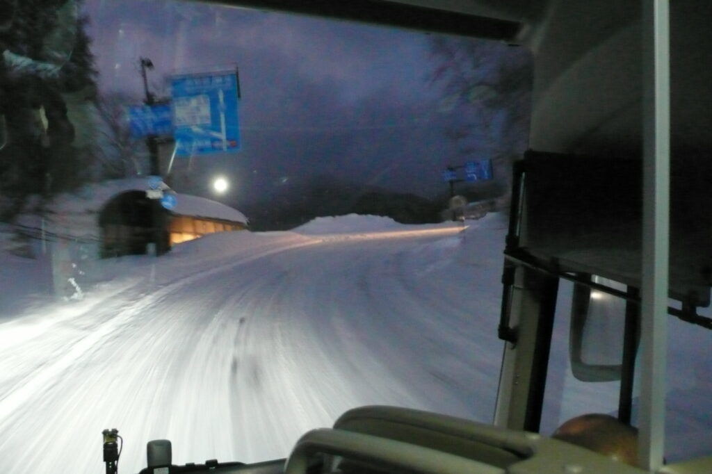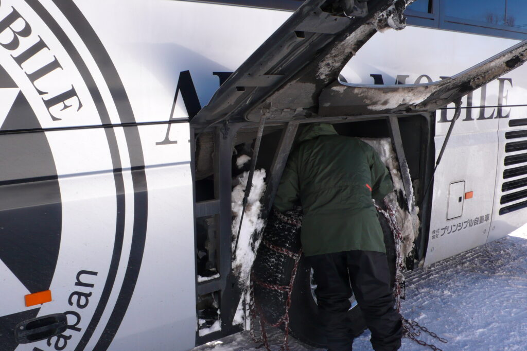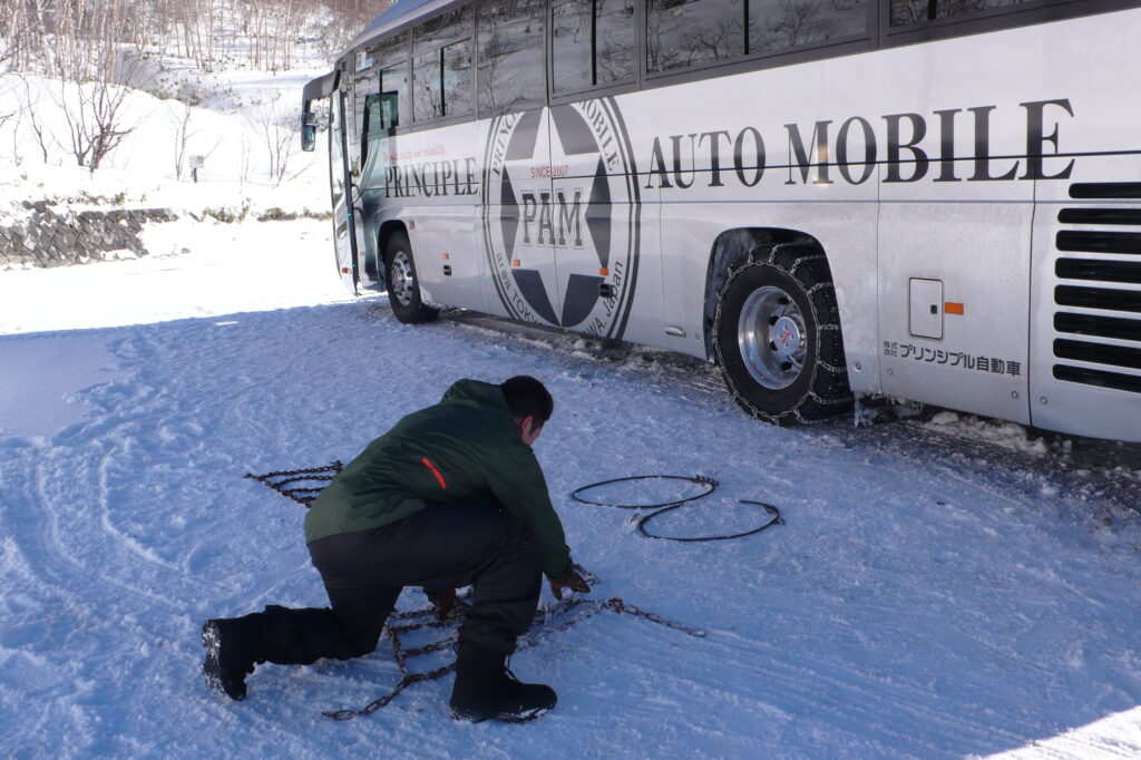 新人運転士を主軸に熟練運転士まで選出し実際に雪山へバスで乗り込み、≪雪山ルート研修・雪山走行研修・チェーン着脱研修≫の三つの研修を行い、雪道における安全運転技術向上を目的とした実地研修です。